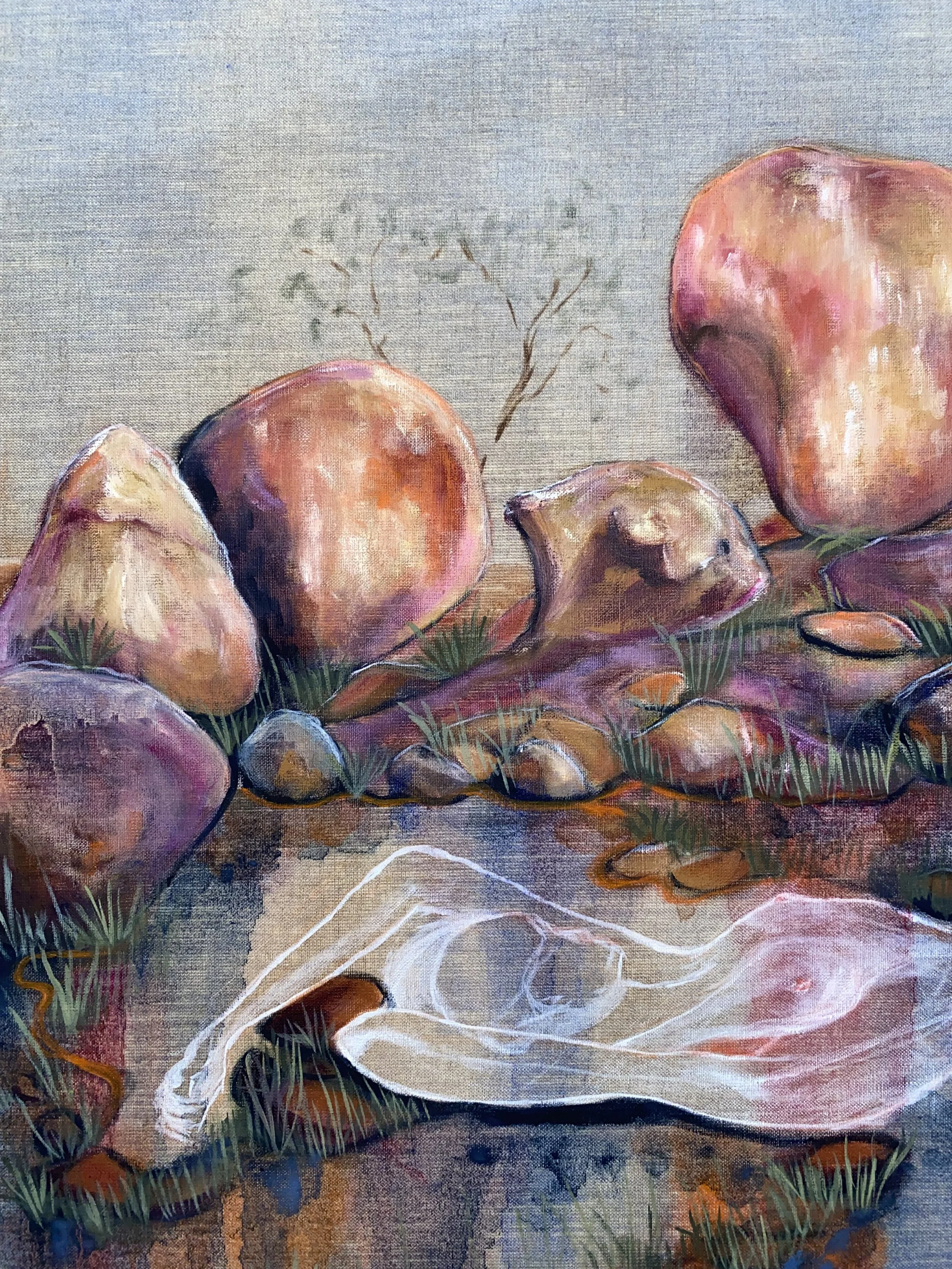 Bella’s ongoing series, ‘It Runs Deep,’ explores the symbolism of the red riverbed, weaving narratives that speak to the resilience of human nature and the inextricable link between identity and environment. Through her work, Bella invites the viewer to pause, reflect, and engage with the subtle whispers of the world around us, creating a rich visual dialogue.